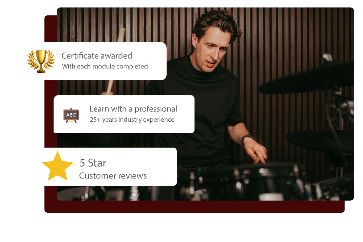 What an amazing opportunity to be taught not only by one of the best drummers in the UK but a complete versatile and varied teaching method which can cover any genre of music.