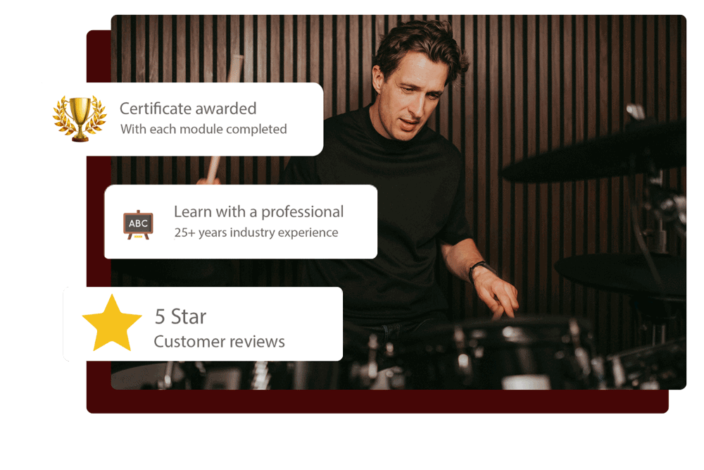What an amazing opportunity to be taught not only by one of the best drummers in the UK but a complete versatile and varied teaching method which can cover any genre of music.